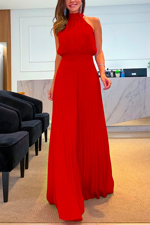 Lotte | Mouwloze halter jumpsuit met wijde pijpen