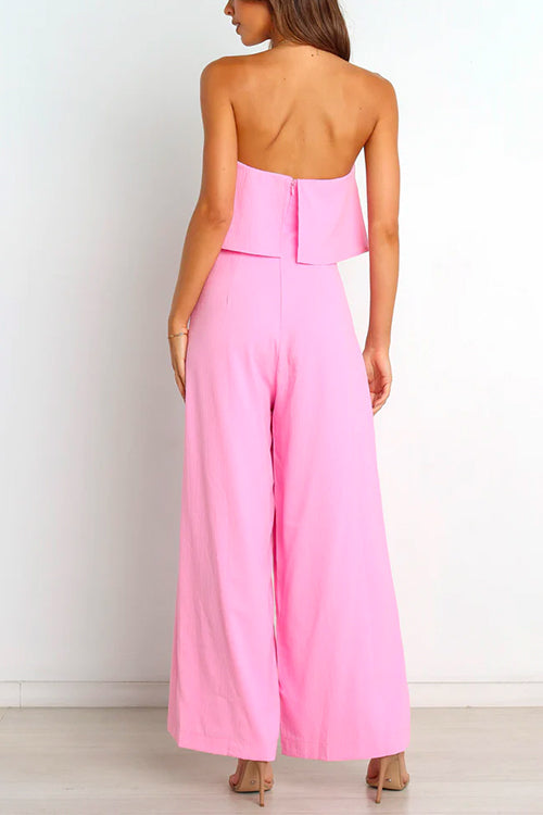 Sofie | Ruflle tube top jumpsuit met hoge taille en wijde pijpen