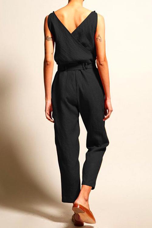 Eline | Mouwloze jumpsuit met V-hals en strik taille