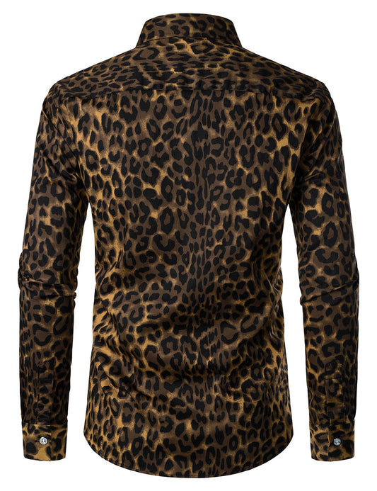 Daan | Bruin luipaardprint casual overhemd met lange mouwen