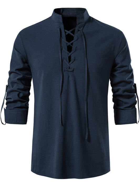 Lars | Heren, effen 100% katoenen overhemd met lange mouwen