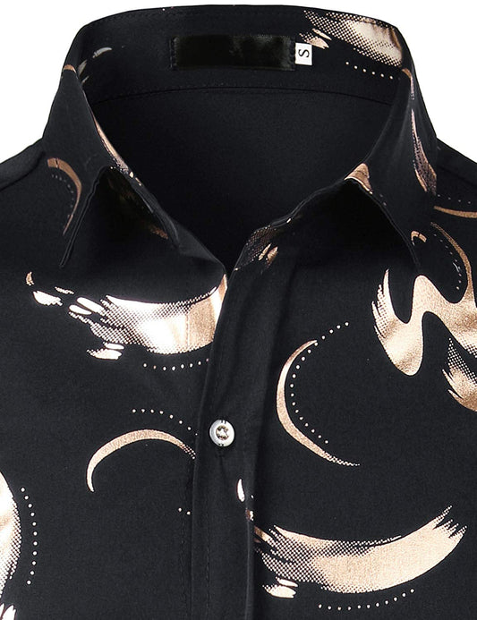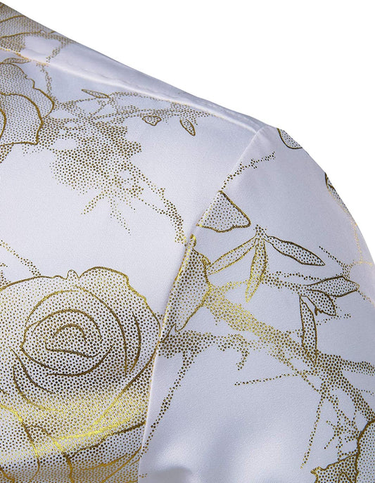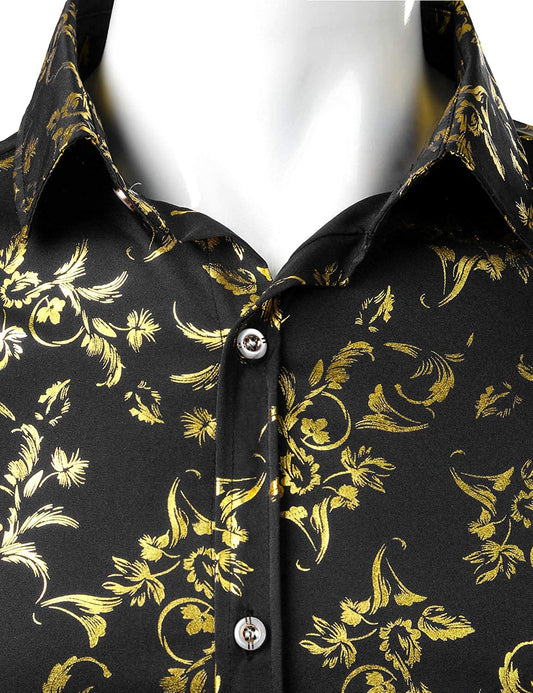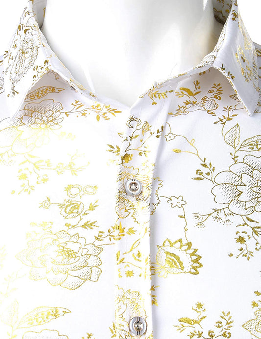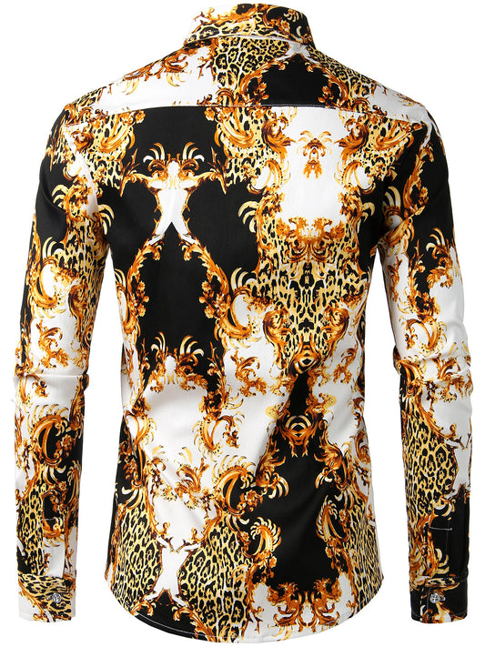 Liam | Gouden bloemenprint overhemd met lange mouwen