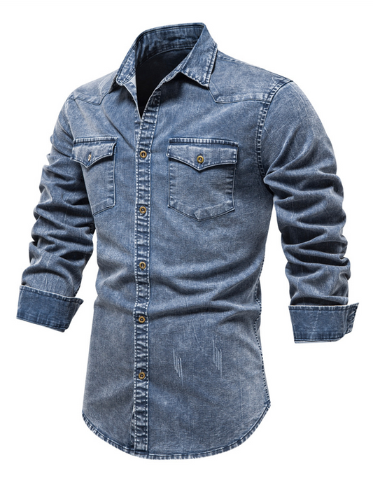 Thijs | Retro denim overhemd met lange mouw