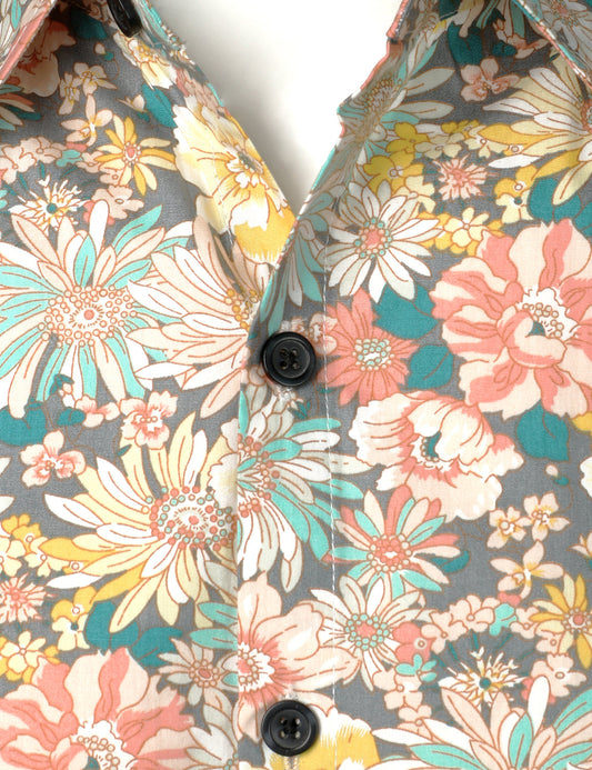 Lars | Grijs katoenen overhemd met bloemenprint