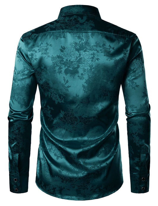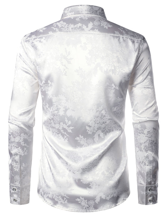 Lucas | Glanzend satijnen herenoverhemd met bloemenjacquard