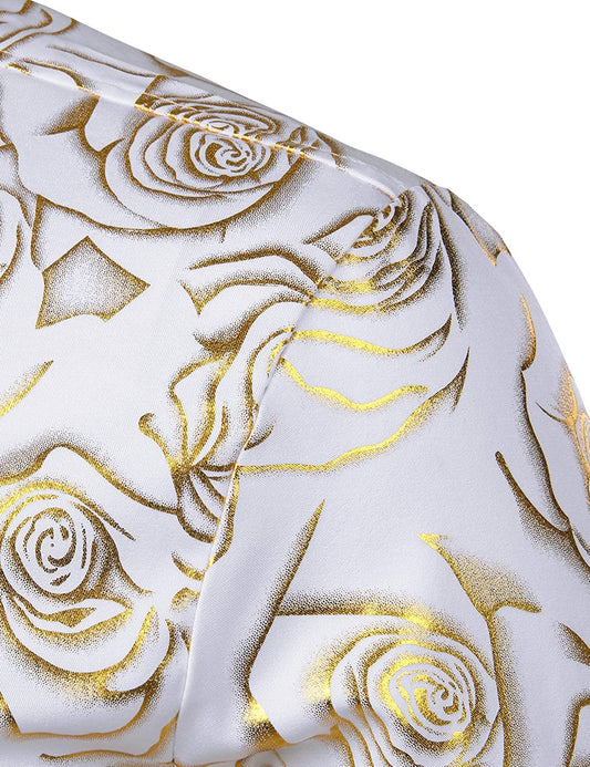 Floris | Wit glanzend satijnen overhemd met bloemmotief