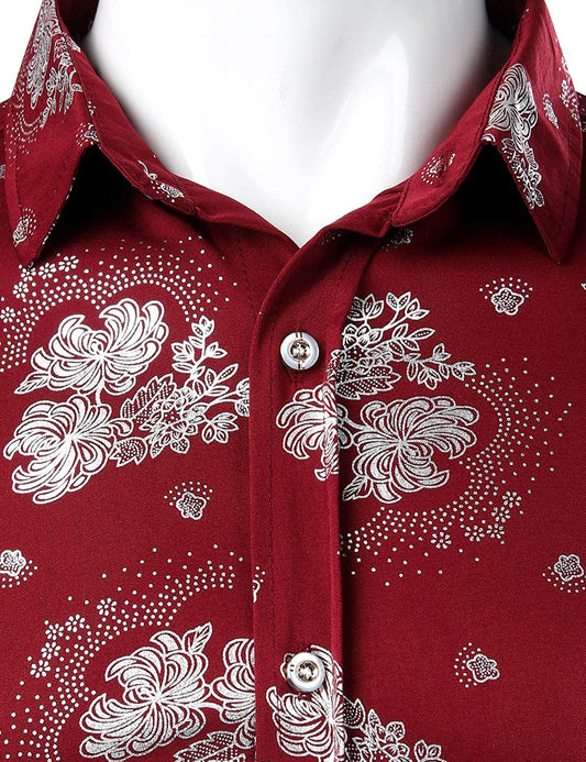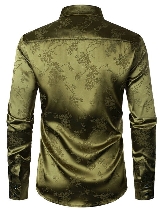 Finn | Heren hippe glanzende bedrukte design overhemden met lange mouwen