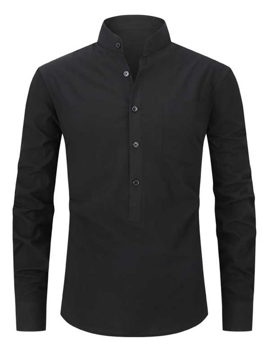 Lars | Heren casual shirt met Henley-kraag en lange mouwen