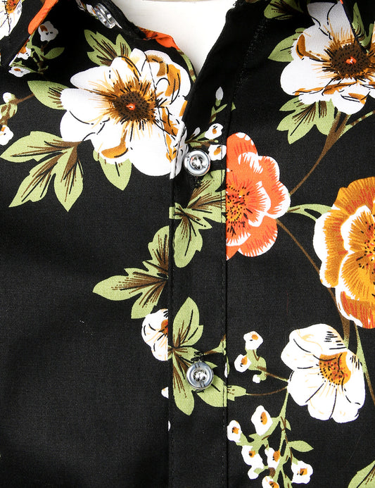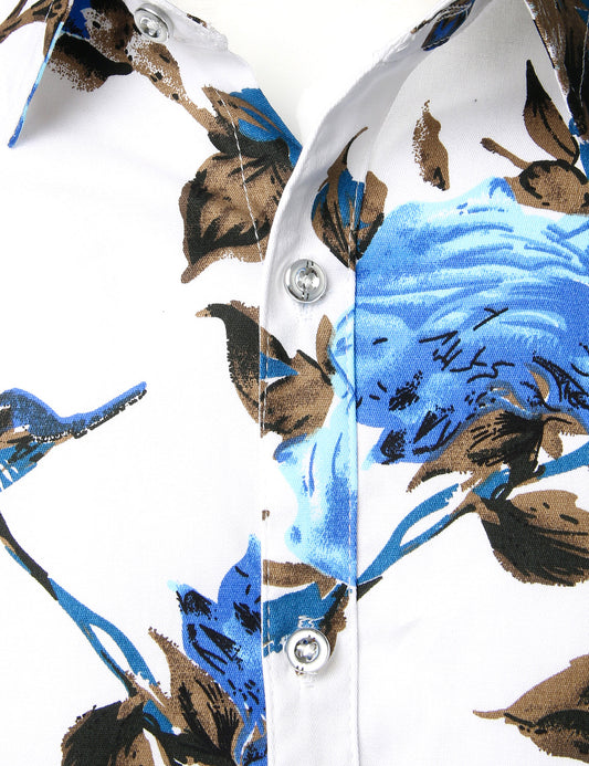 Floris | Heren bloemenprint katoenen casual overhemd met lange mouwen
