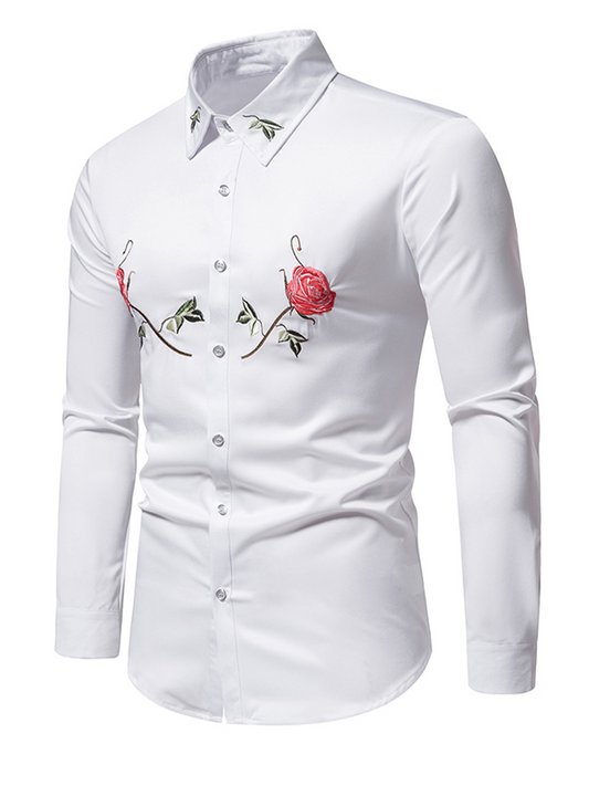 Lars | Heren overhemd met geborduurde bloemen en lange mouw