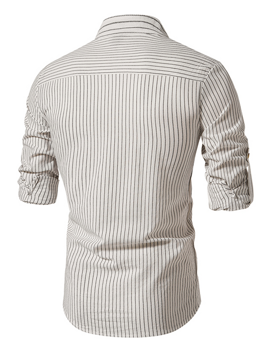 Lars | Heren gestreept katoenen shirt met Henley kraag