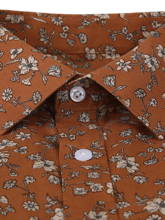 Lars | Heren bruin vintage overhemd met bloemenprint