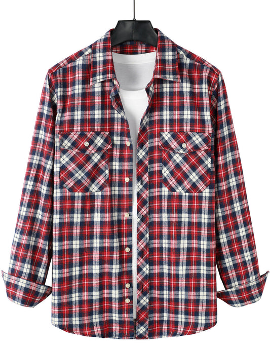 Finn | Heren casual geruite flanellen spijkerblouse met lange mouwen
