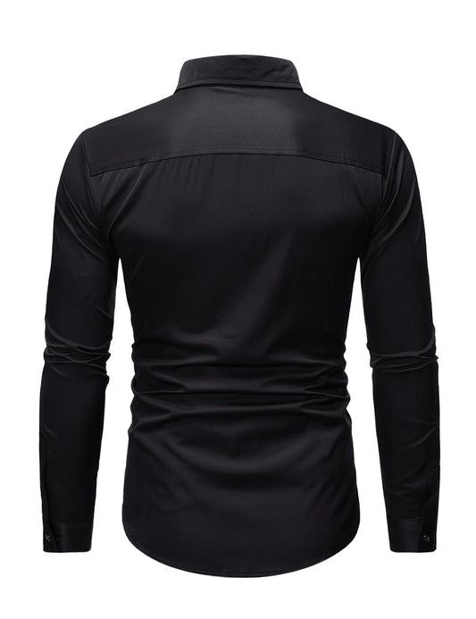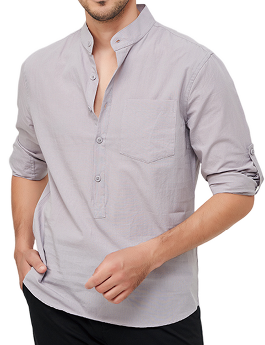 Milan | Heren overhemd met opstaande kraag en kanten details in effen kleur