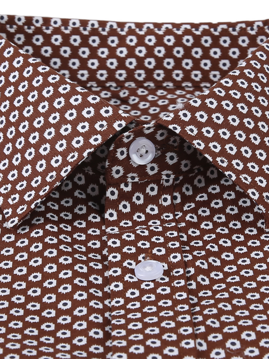 Floris | Bruin vintage casual print overhemd met lange mouwen