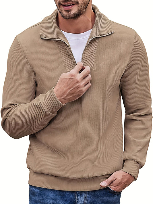 Jens | Effen kleur lange mouw T-shirt met rits kraag