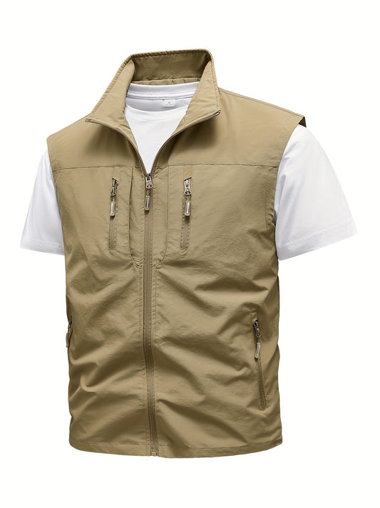 Pim | Mouwloos casual herenvest met opstaande kraag in effen kleur