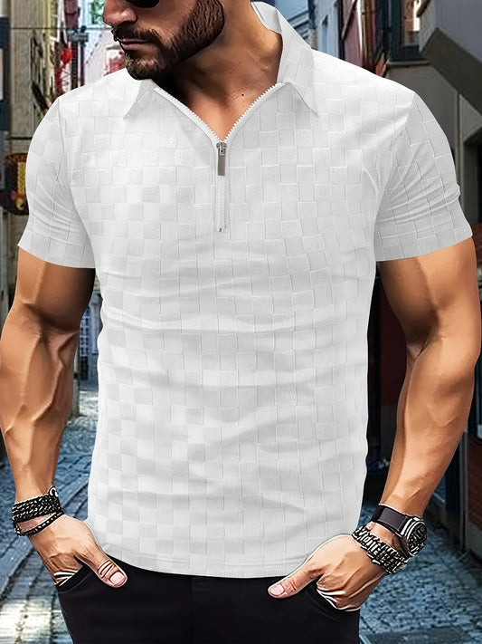 Lucas | Casual halve rits herenshirt in effen wafel breisel