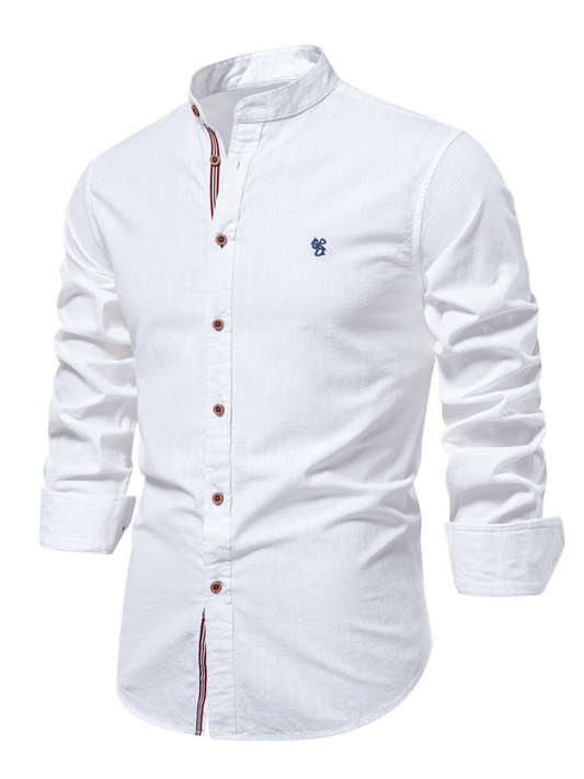 Lars | Heren, effen 100% katoenen overhemd met lange mouwen